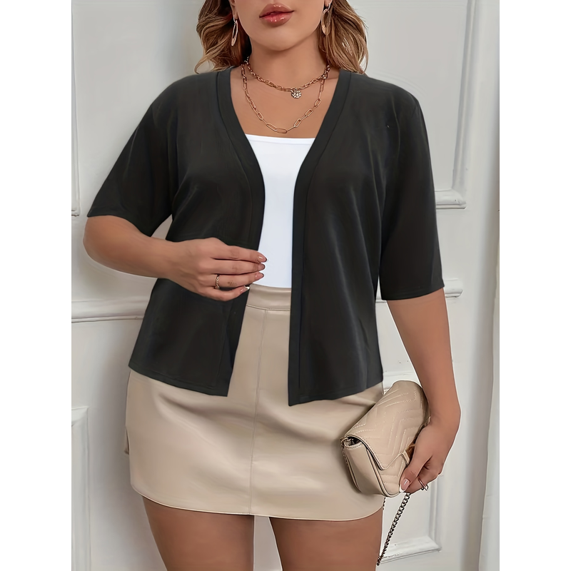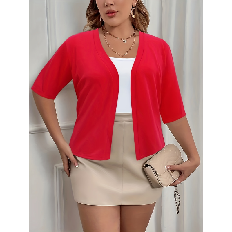 Europe and the United States explosions plus size elegant women's plus size basic half sleeve slightly elastic cardigan