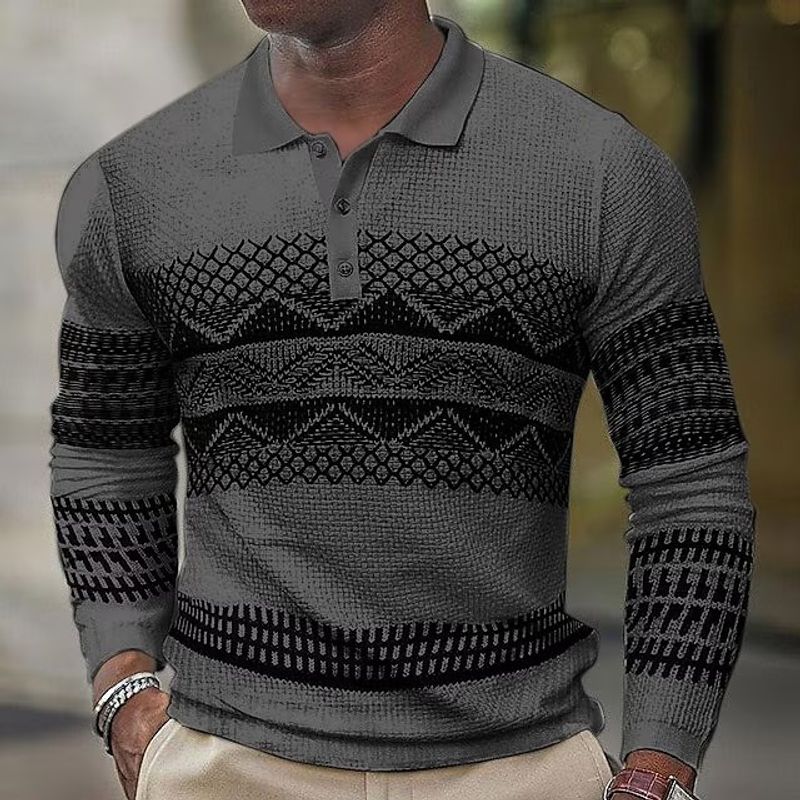 European And American Button Sleeve Length POLO Sports Casual Men Gray XXL