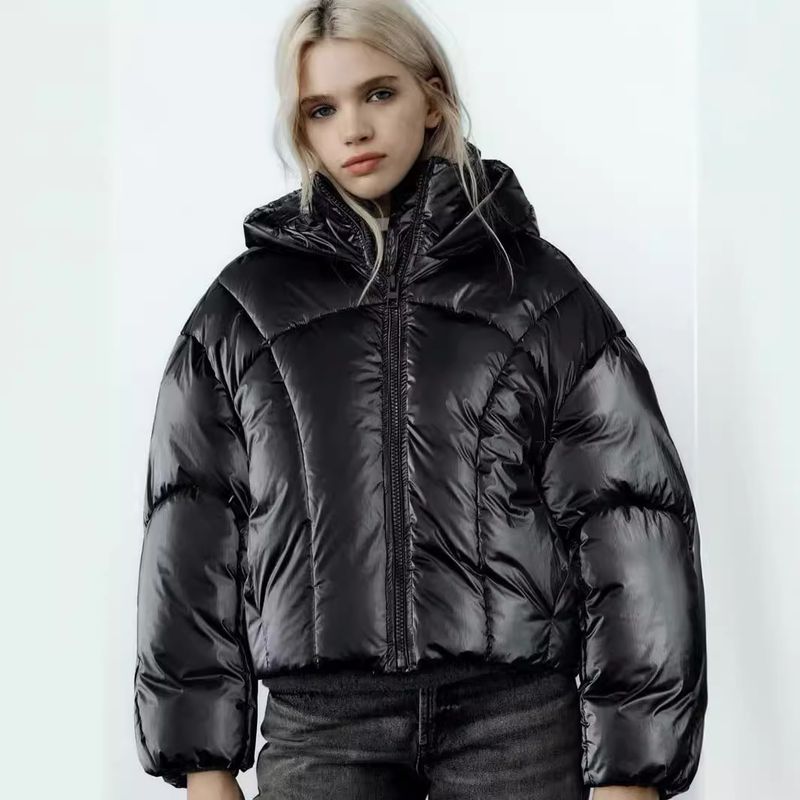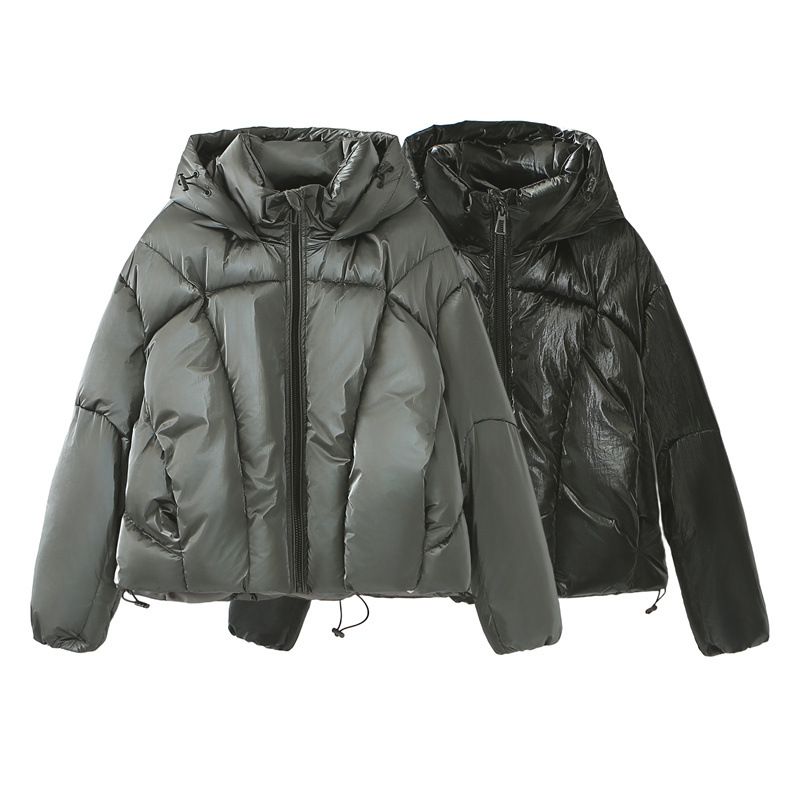 European And American Hooded Loose Metal Technology Down Coat Silver Gray M