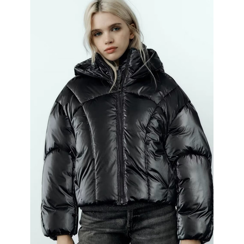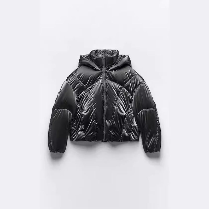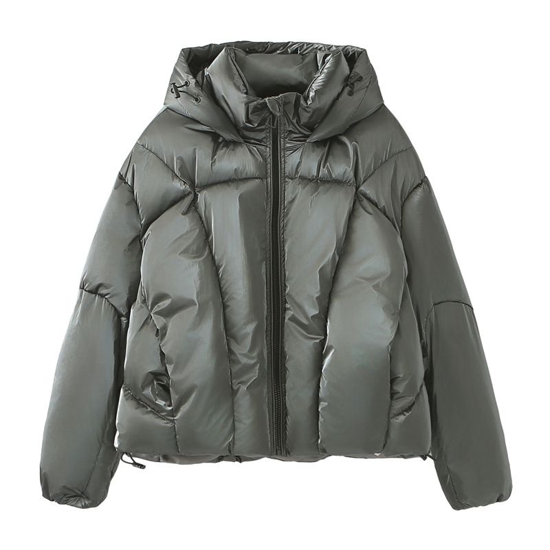 European And American Hooded Loose Metal Technology Down Coat Silver Gray S