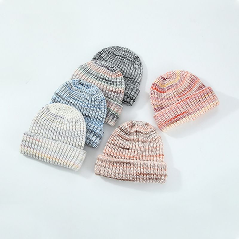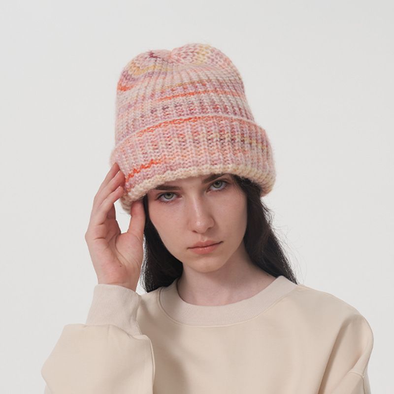 European And American Ins Warm Autumn And Winter Multi-color Niche Gradient Flanging With Wool Knitted Hat Women 6 Orange