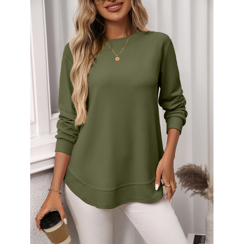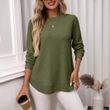 European And American Loose Waffle Casual All-match T-shirt Knitted Long Sleeve Army Green S