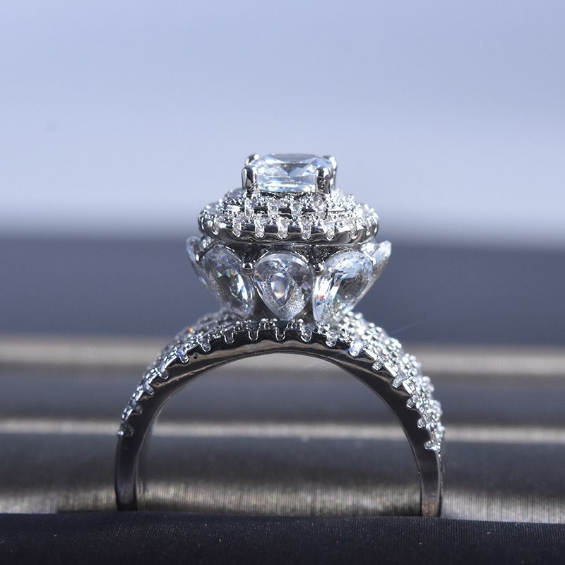 European and American luxury three-layer full diamond group ring White gold 10th