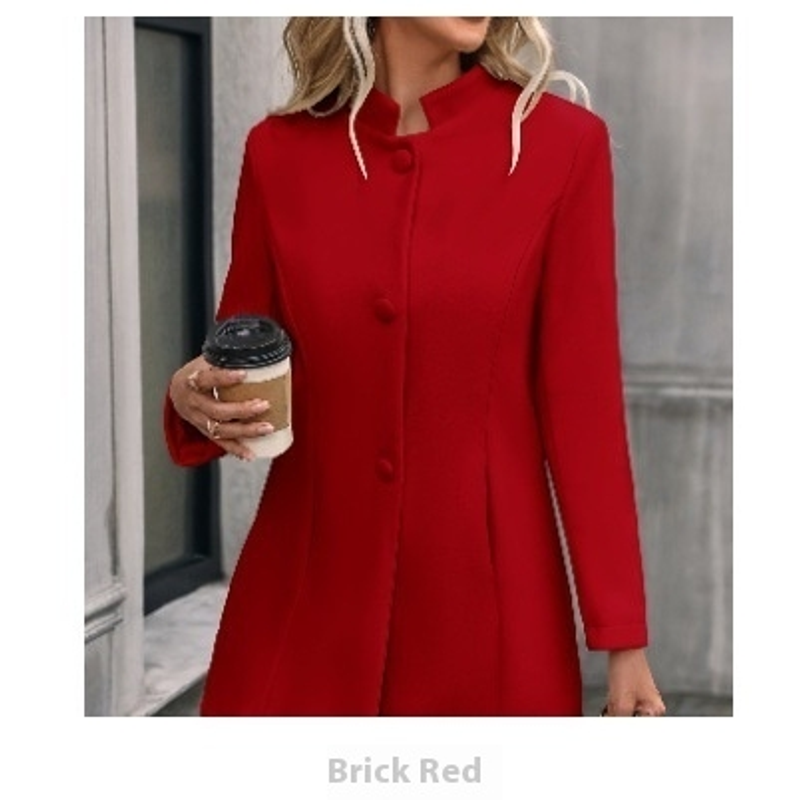 European And American New Fall And Winter Lapels Slim-fit Wool Solid Color Fashion Temperament Coat Brick Red XXL