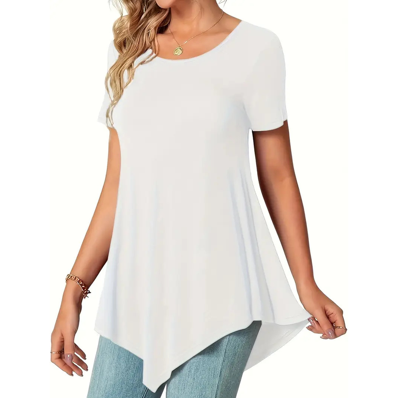 European And American Plus Size Round Neck Top White 2XL