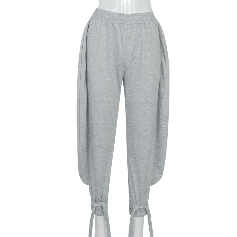 European And American Women's Autumn New Backless Long-sleeved Blouse With Tethered Trousers Grey pants M
