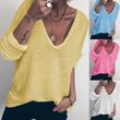 European And American Women's Casual Loose Long-sleeved V-neck Printed T-shirt Blue 2XL