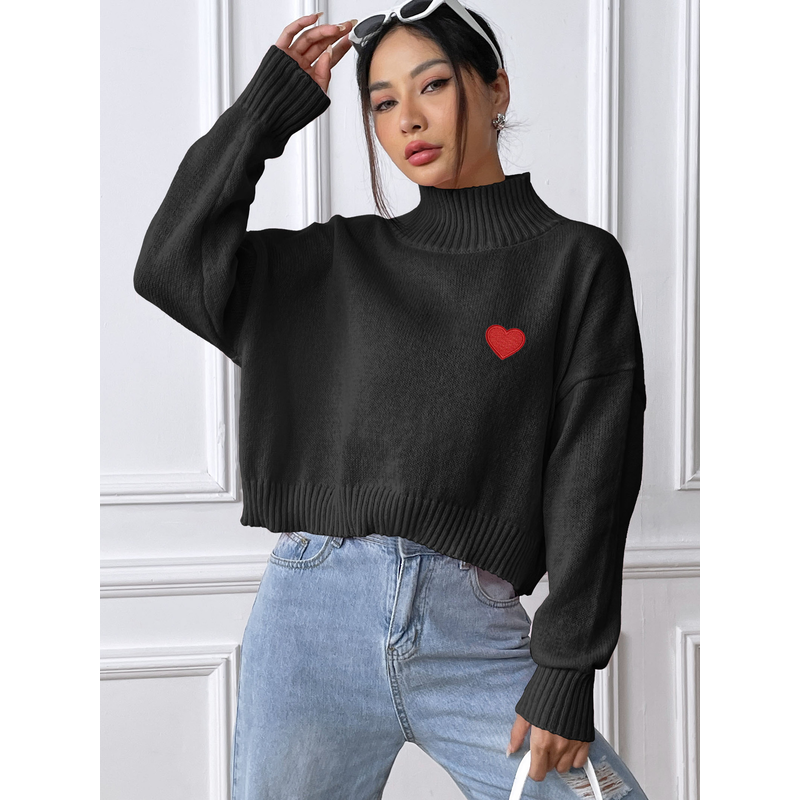 European And American Women's Clothing Turtleneck Pullover Loose Black M