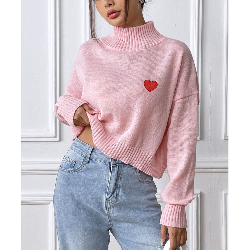 European And American Women's Clothing Turtleneck Pullover Loose Pink S