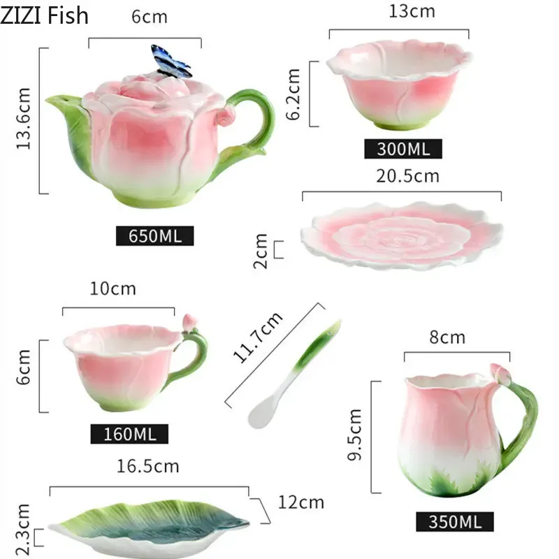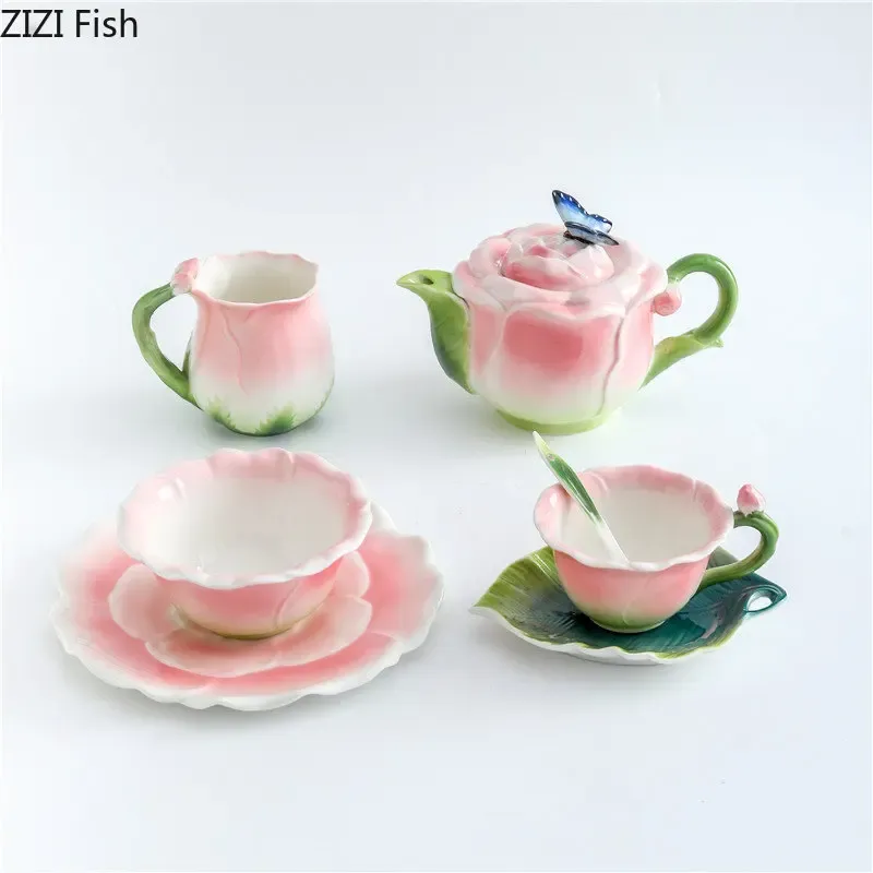 European Creative Flower Mug Couples Afternoon Tea Ceramic Coffee Cup Set Office Kungfu Tea Set Home Drinking Set Friend Gift