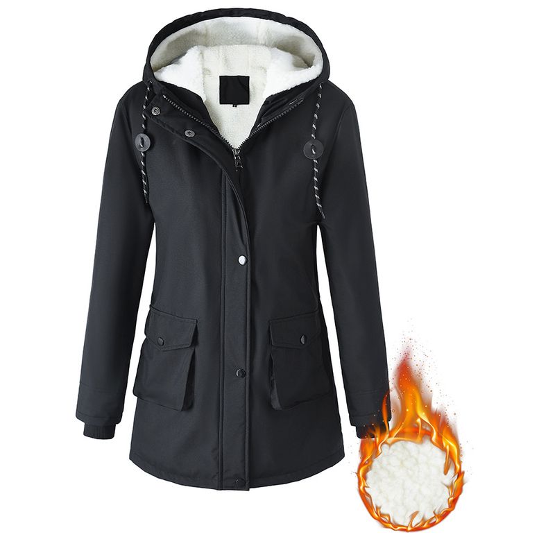 European Size Thickened Velvet Cotton Clothes Female Casual Hooded Coat Black S