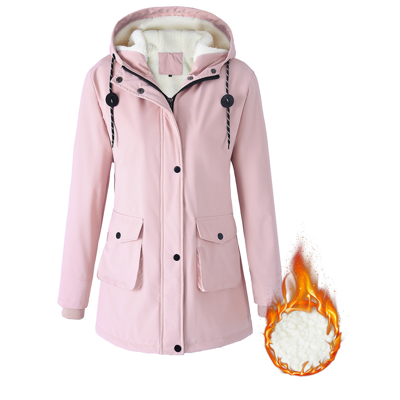 European Size Thickened Velvet Cotton Clothes Female Casual Hooded Coat Pink XL