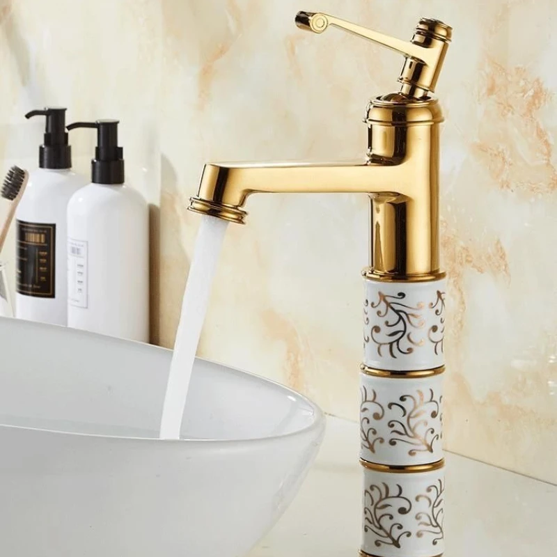 European Style Faucet Gold Personality Simple Nordic Art Health Fashion High-end Elevated Basin Bathroom Hot and Cold