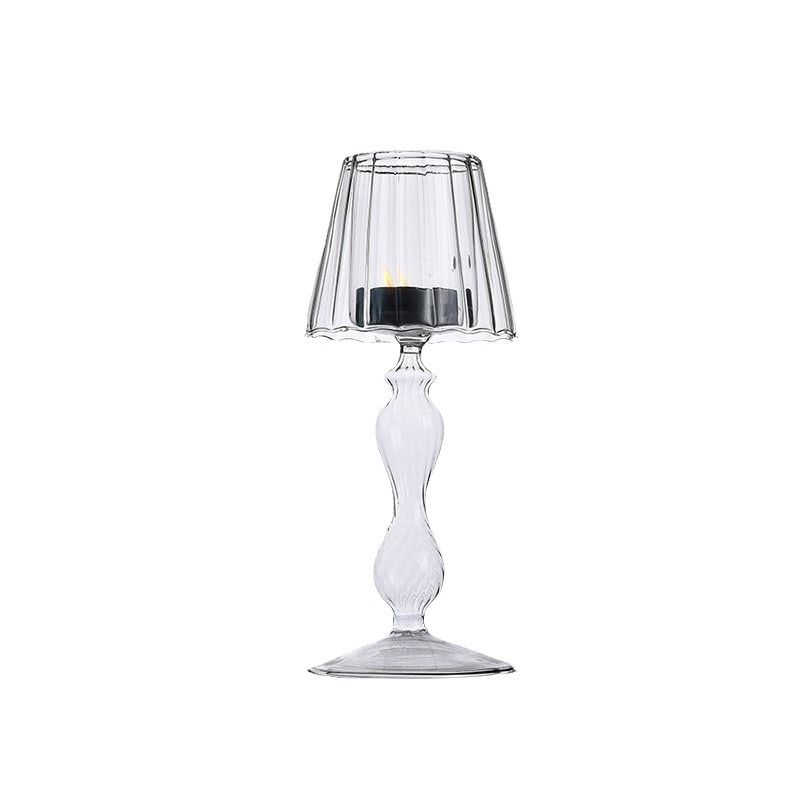 European Style Glass Desk Lamp Shaped Candle Holder High Legged Striped Candle Holder Wedding Home Creative Decoration