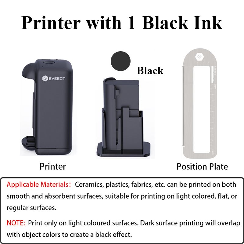 【Suitable for Any Surface】Evebot PrintInd portable inkjet printer uses solvent-based ink cartridges and can print on canvas, metal, plastic, glass and other surfaces. It uses a roller sensor and also supports printing on curved surfaces. Handheld printer by connecting to the exclusive APP, you can upload QR codes, dates, text, logos, custom images and other printed content.