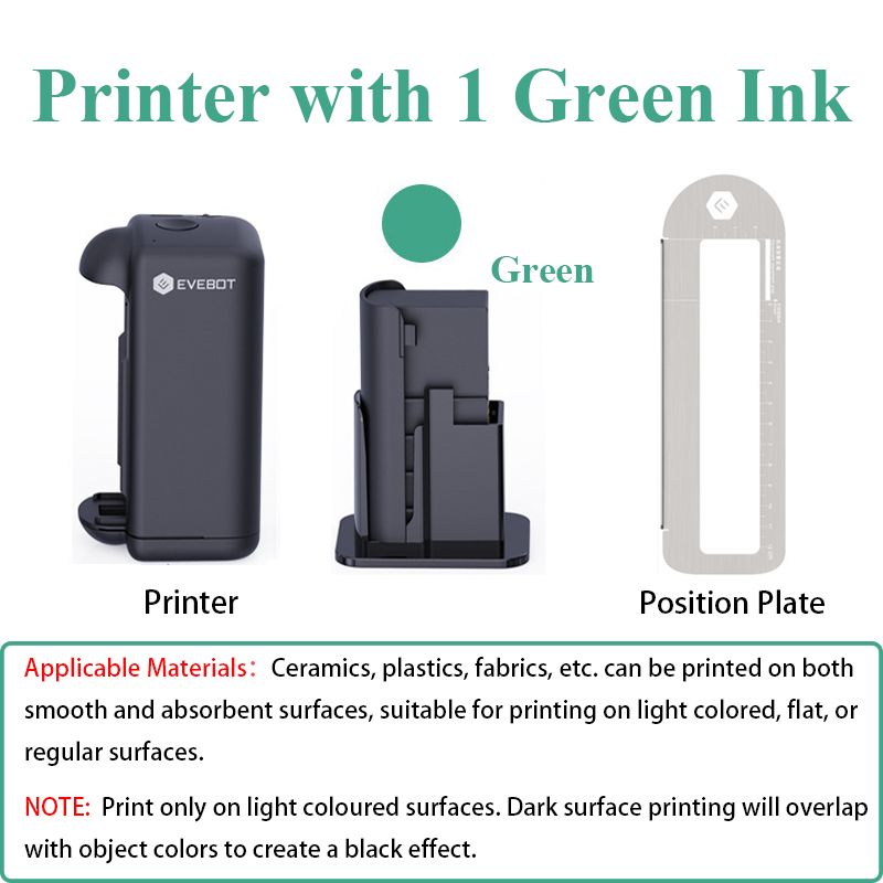 【Suitable for Any Surface】Evebot PrintInd portable inkjet printer uses solvent-based ink cartridges and can print on canvas, metal, plastic, glass and other surfaces. It uses a roller sensor and also supports printing on curved surfaces. Handheld printer by connecting to the exclusive APP, you can upload QR codes, dates, text, logos, custom images and other printed content.