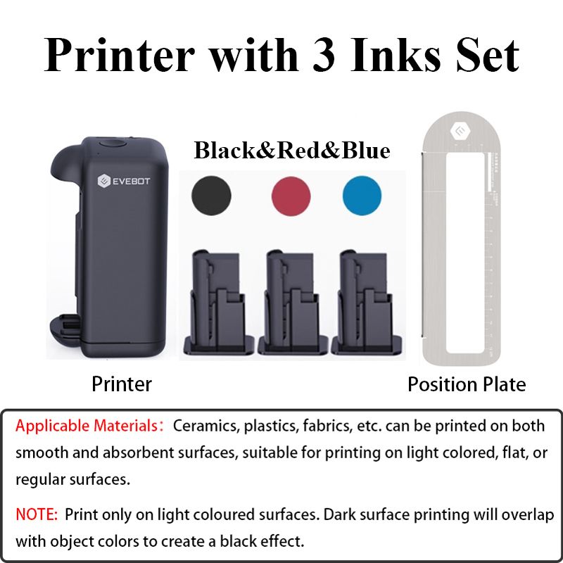 【Suitable for Any Surface】Evebot PrintInd portable inkjet printer uses solvent-based ink cartridges and can print on canvas, metal, plastic, glass and other surfaces. It uses a roller sensor and also supports printing on curved surfaces. Handheld printer by connecting to the exclusive APP, you can upload QR codes, dates, text, logos, custom images and other printed content.