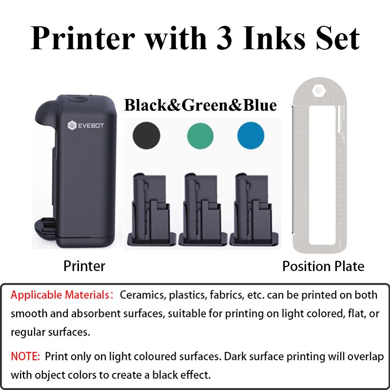 EVEBOT PRINTIND Portable Handheld Industrial Inkjet Printer Bluetooth Wireless Smart Mini Printer Quick-dry Ink (Permanent Ink)
