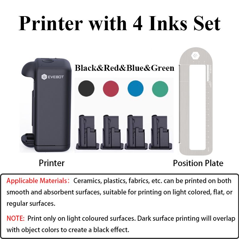 【Suitable for Any Surface】Evebot PrintInd portable inkjet printer uses solvent-based ink cartridges and can print on canvas, metal, plastic, glass and other surfaces. It uses a roller sensor and also supports printing on curved surfaces. Handheld printer by connecting to the exclusive APP, you can upload QR codes, dates, text, logos, custom images and other printed content.