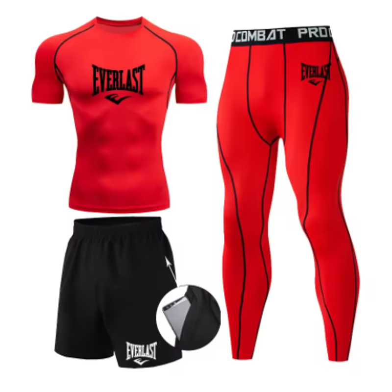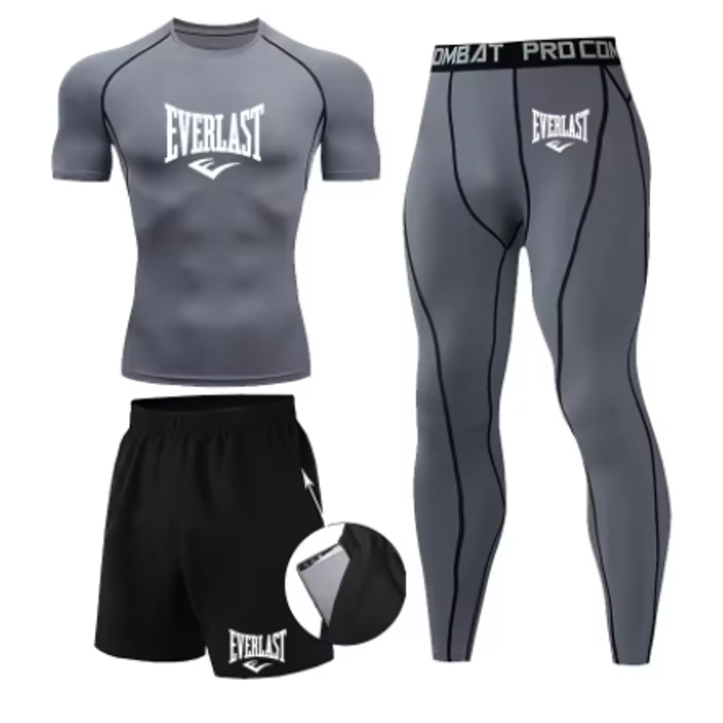 EVER/LAST Black Men's Suits Compression Shirts Leggings Elasticity Fitness Gym Running Breathable Quick Dry Rashguard Men Sets