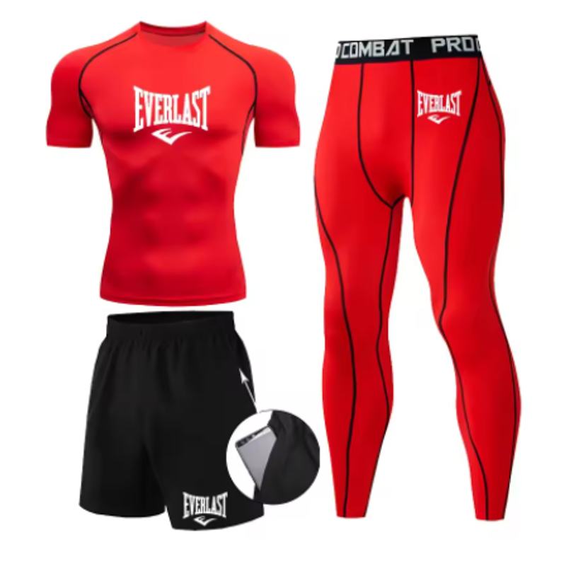 EVER/LAST Black Men's Suits Compression Shirts Leggings Elasticity Fitness Gym Running Breathable Quick Dry Rashguard Men Sets