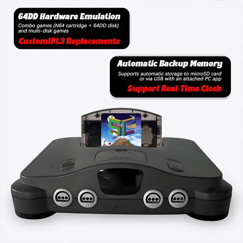 • Extreme Game Compatibility: Supports N64 games up to 64MB (512Mb), covering the entire N64 game library.