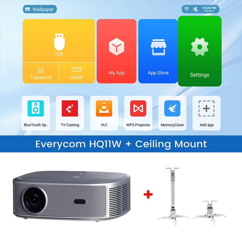 Everycom HQ11W Projector 3600 ANSI Android 15 Full HD 1080P 4K HDR10 15dB Ultra-low Noise Projectors for Home Theater Beamer