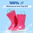 • ✅【Easy On and Off】Our rain boots are ergonomically designed, and the cute round-toed shape of gives enough space for kids feet, can be flexibly bent, your kids can easily learn to put them on and off herself. There are two reinforced handles on the upper, and very convenient to carry anywhere.