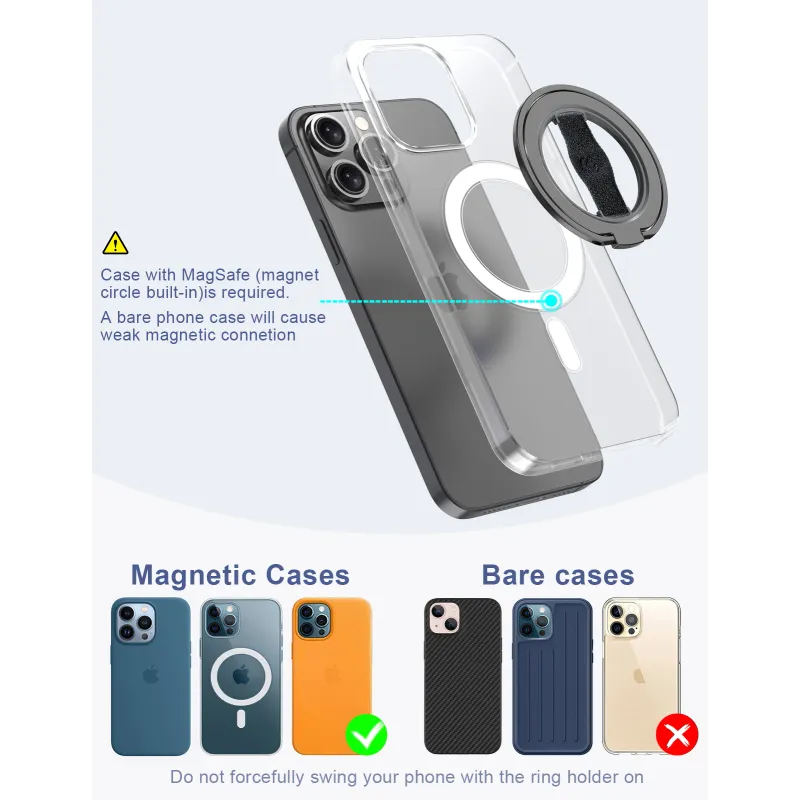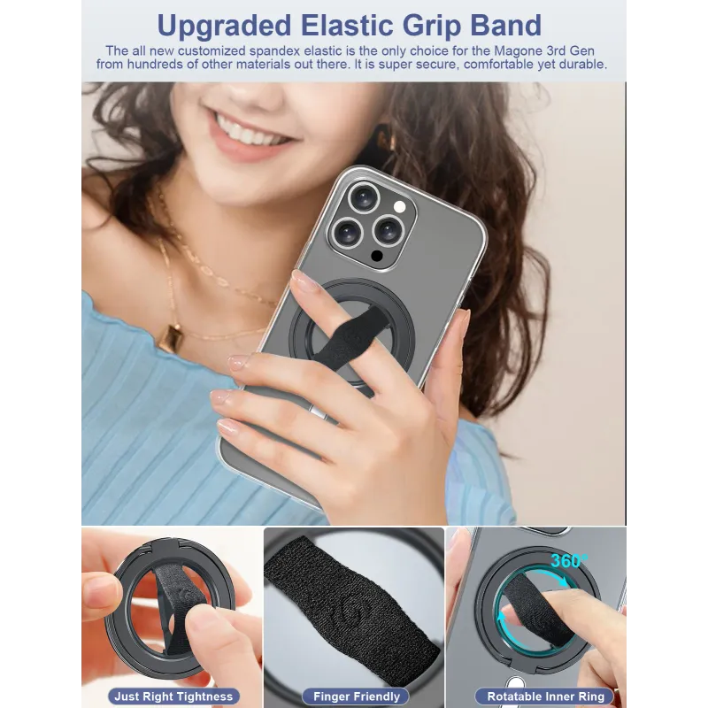 Secure Phone Grip: Strong magnets firmly adhere to the back of a phone case [Compatible with iPhone MagSafe], the elastic band to secure the phone in your hand greatly reducing the chances of dropping the phone while in use.