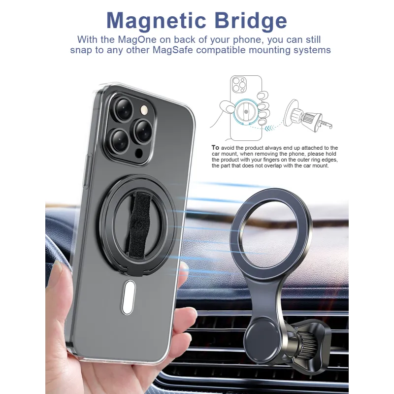 Magnetic Bridge: The ultra-slim design, the magnets on the Grip perfectly align with the magnetic array[Compatible with iPhone Magsafe], so you can use wireless charging, magnetic car mounts or magnetic desk stands without needing to remove the grip.