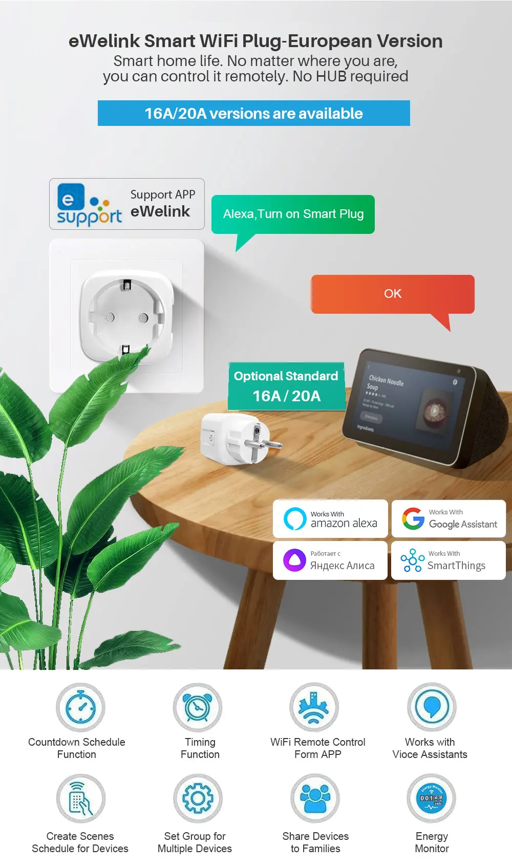 It is easy to connect the device with your smart phone or tablet and then control the plug anywhere and anytime according to your own requirement via eWelink app . Enjoy your convenient eWelink whether you are on vacation/business or at home.