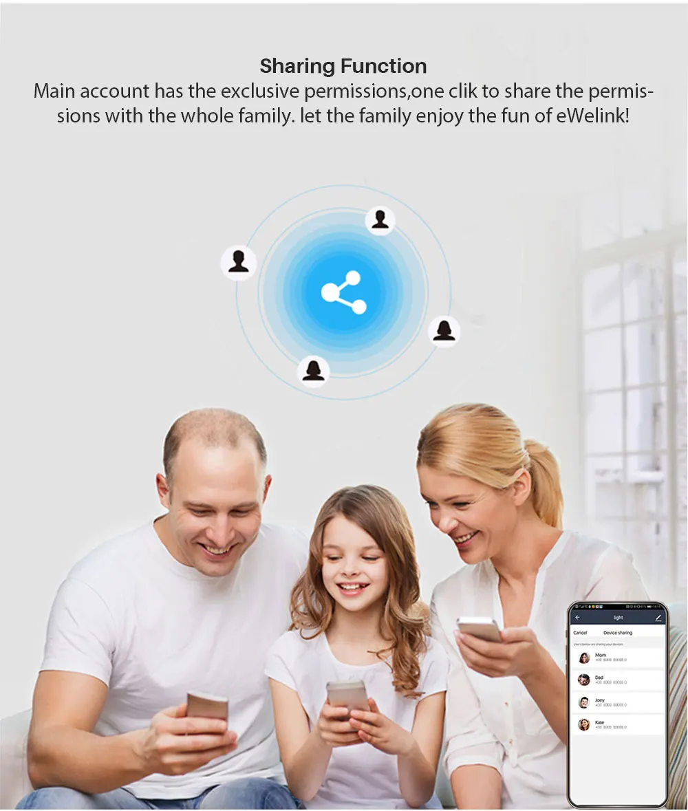 You can select a power plug sharing in profile, then your family members and your friends can enjoy the eWelink with you.
