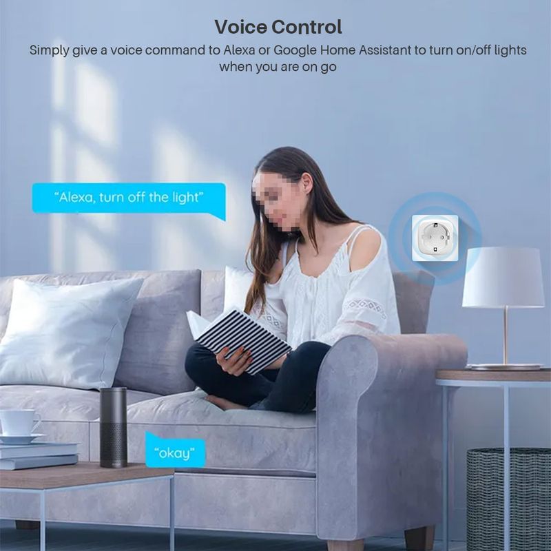 It has a scene setting function. You can choose a suitable scene to run the appliances by start the mode, such as home mode, temperature and humidity or other conditions. For example, if you go home and open the door, you can set the light which connect the power to this smart power plug on and then the camera off.