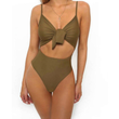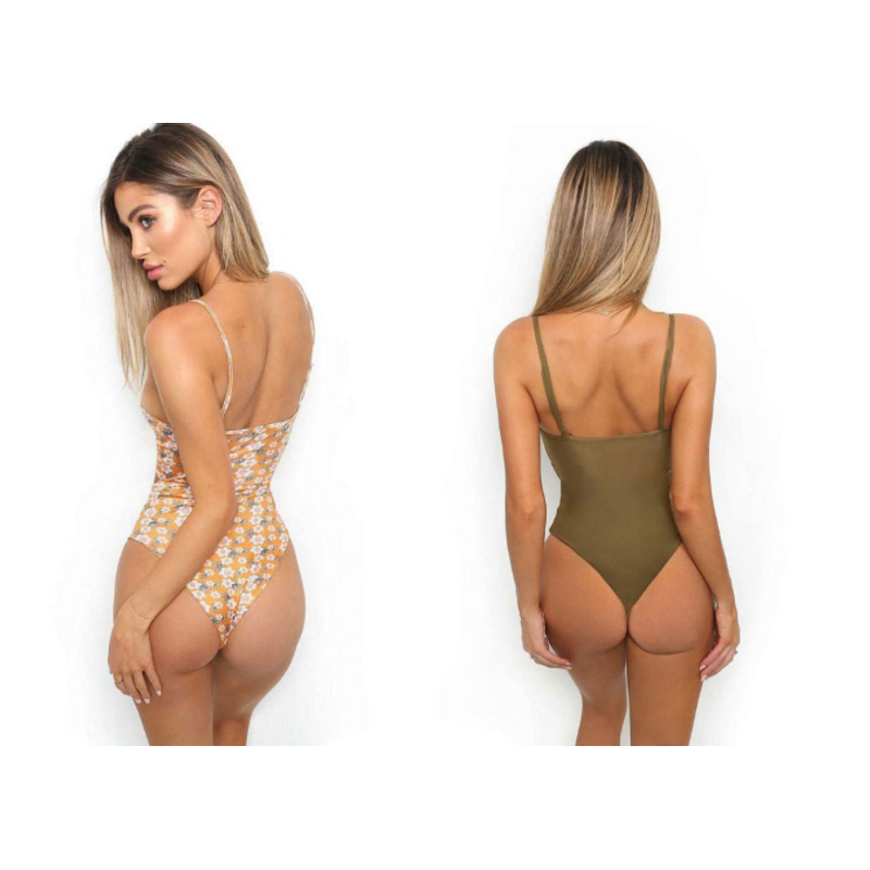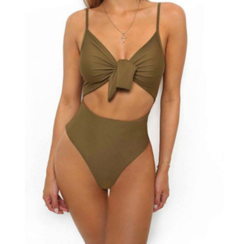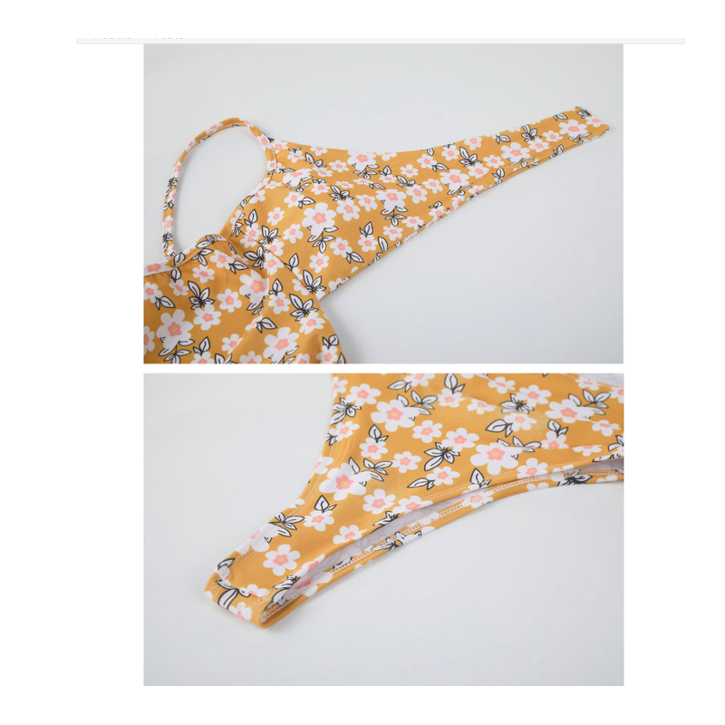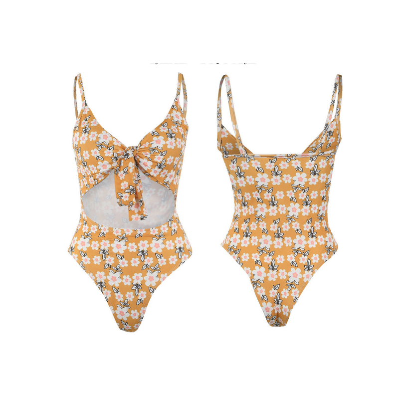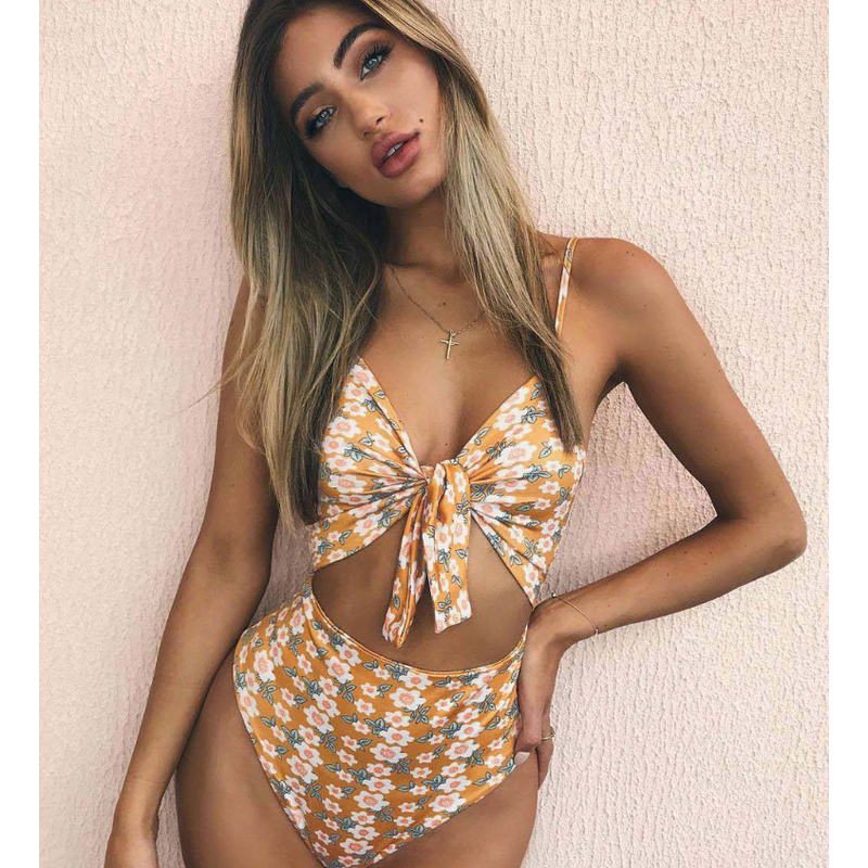 Explosion models sexy tie knot print one-piece swimsuit ZC2520 plus chest pad Yellow XL