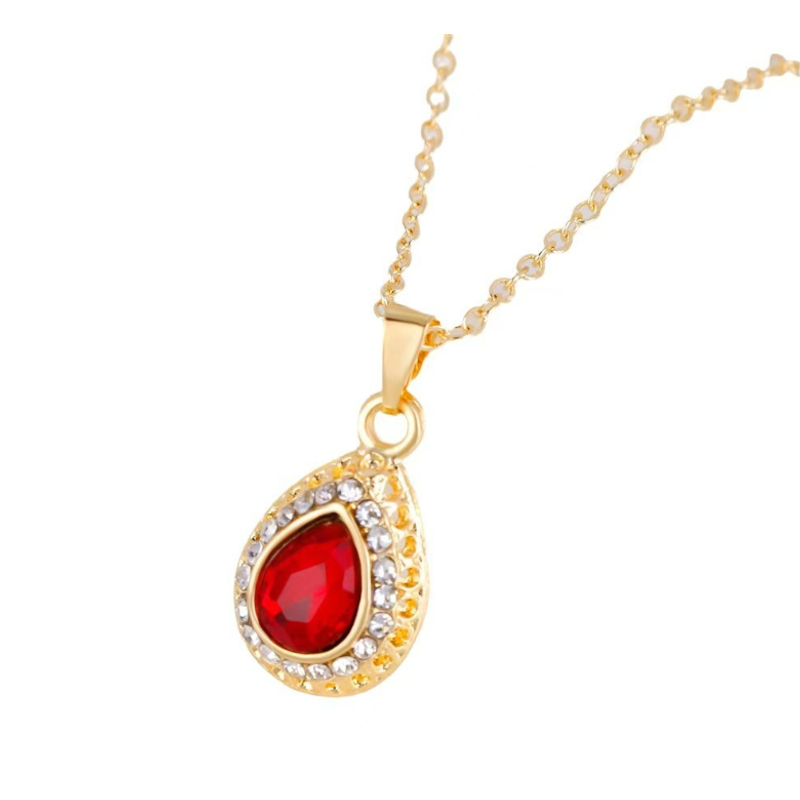 Exquisite Alloy Multi-Color Waterdrop Necklace And Earrings Jewelry Three-Piece Set Red