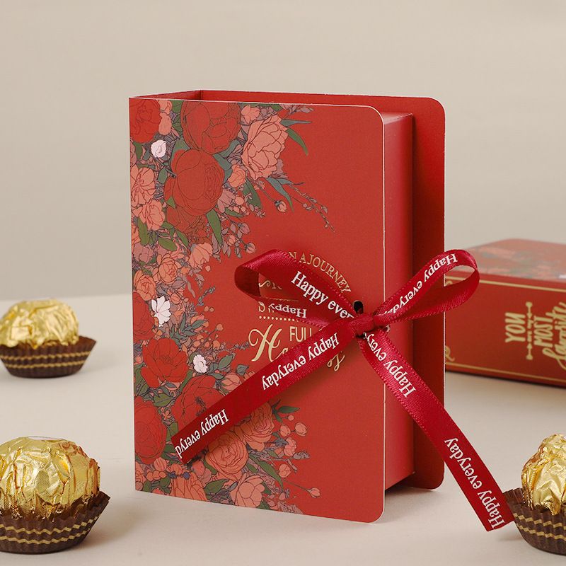 Exquisite Chocolate Gift Box Book Shape Gift Packing Box With Ribbon Paperboard Candy Present Box For Wedding Valentine'S Day