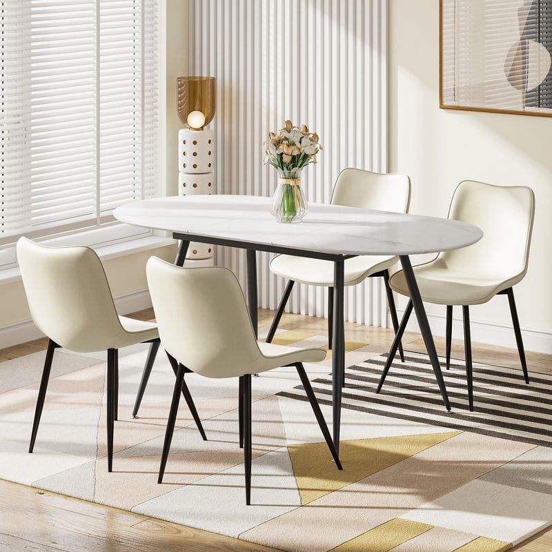 When not extended, this space-saving dining table measures 120 x 80 x 77 cm. When fully expanded, the extendable kitchen table reaches 160 x 80 x 77 cm, offering ample space for larger gatherings. The smooth oval tabletop is safe and stylish