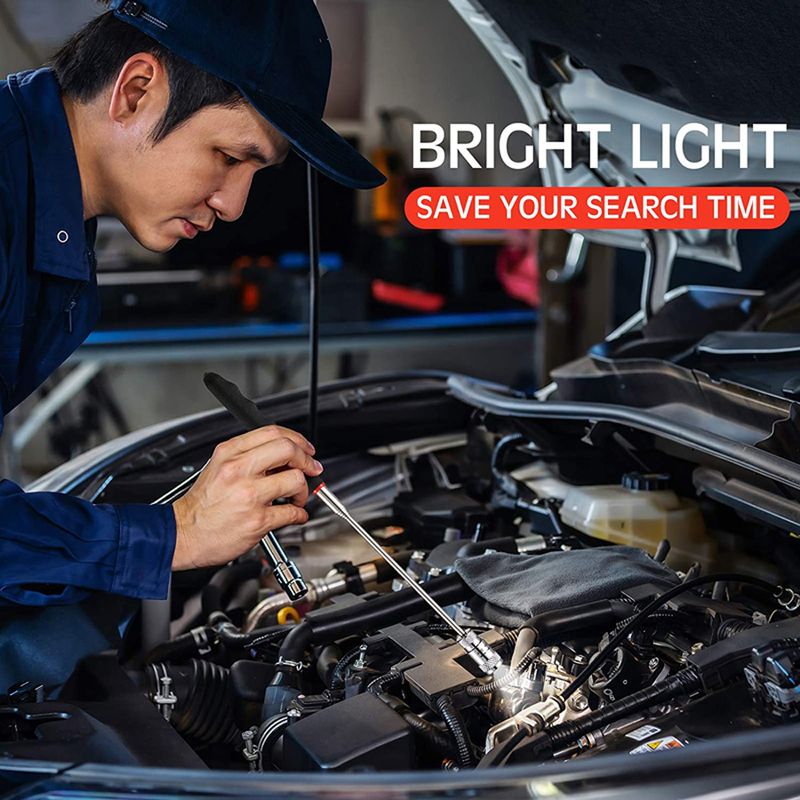 【Design】The pickup tool is very suitable for narrow and dark places, which can help you illuminate a broader view to pick up tiny items; And the flexible telescoping can extend to 31 inches for maneuvering around hard-to-reach places; In addition, you can easily stand this telescoping magnet stick up on a metal object and telescope the neck to do all kinds of tedious jobs requiring.