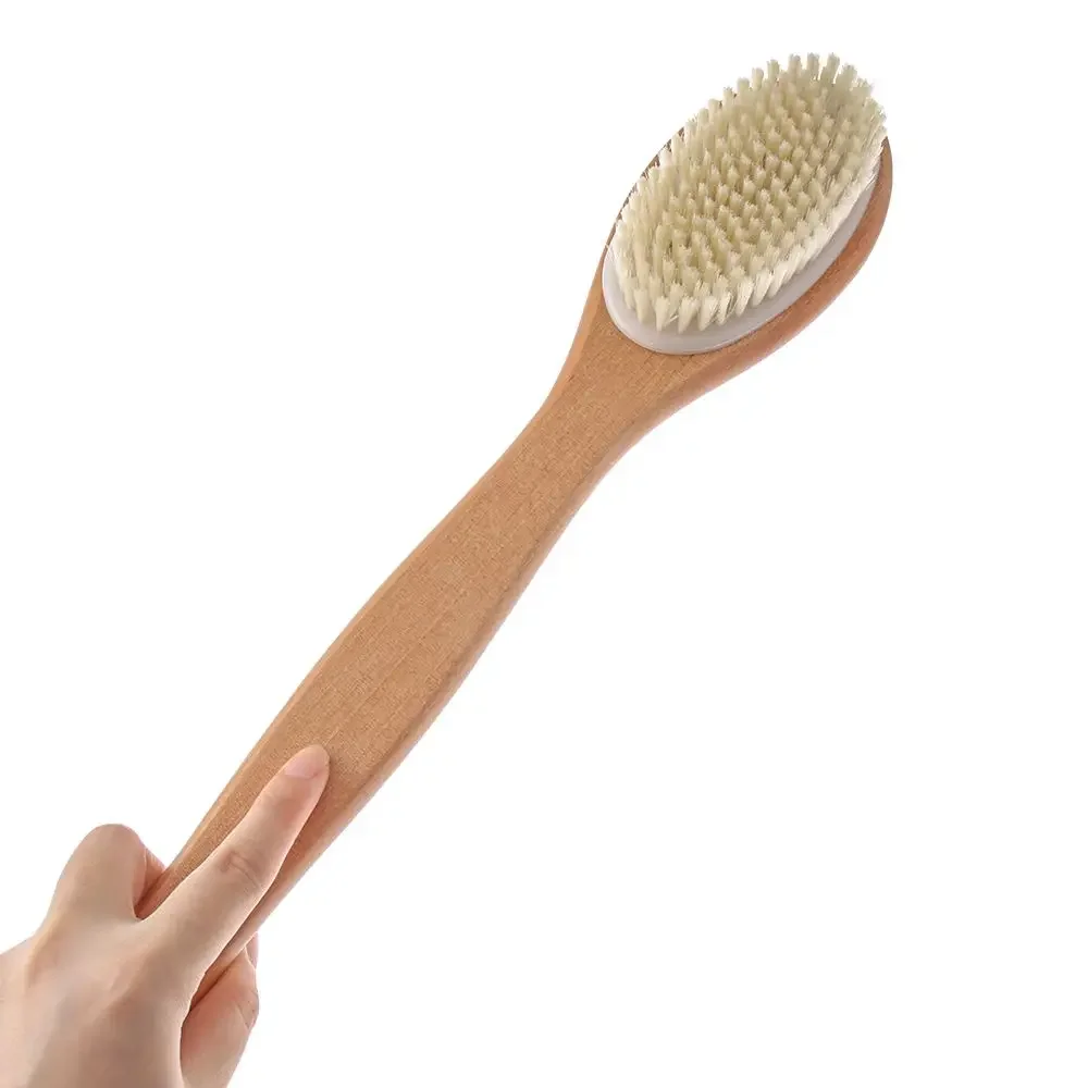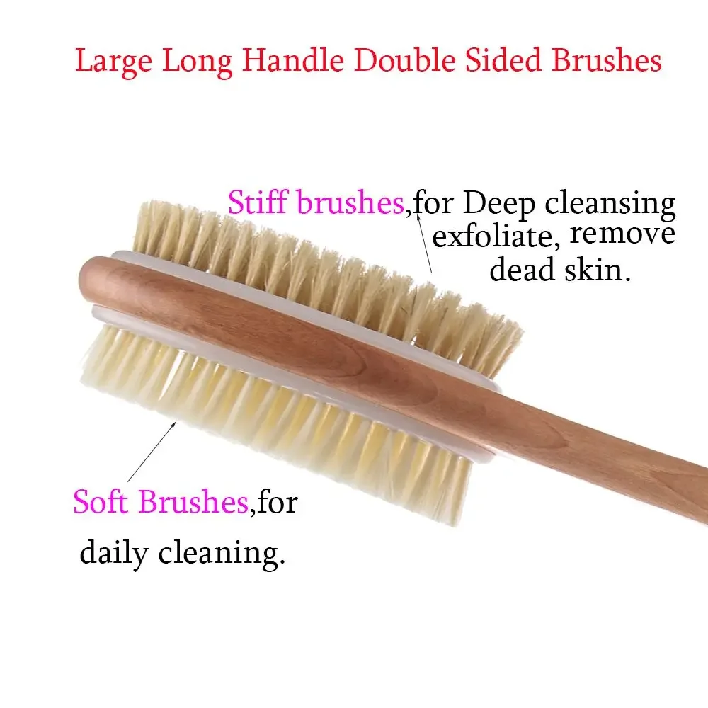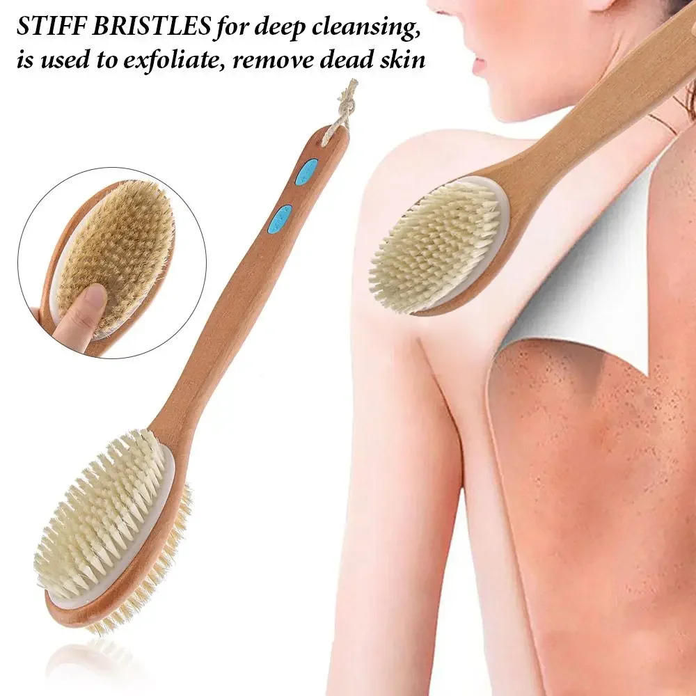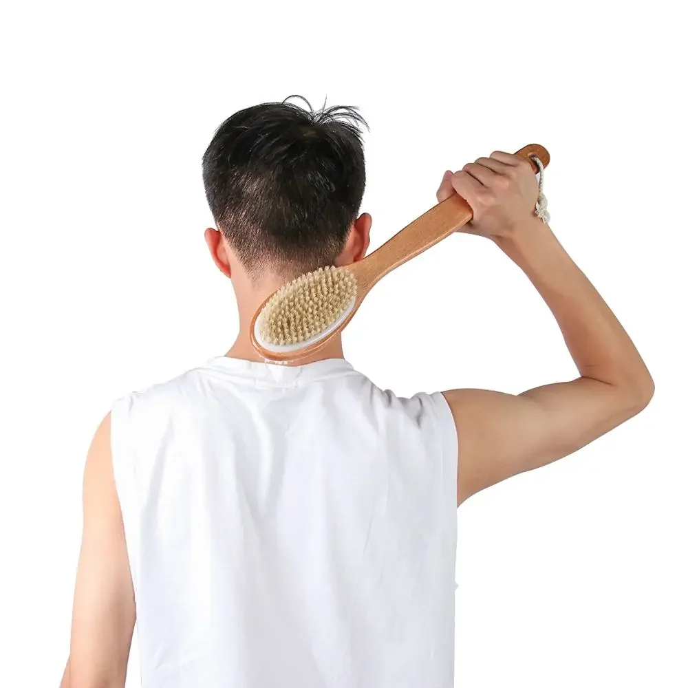 Extended Reach Shower Brush | 2-Sided Exfoliating Pad & Bristle Head for Back Scrubbing, Foot Care & Circulation Boost
