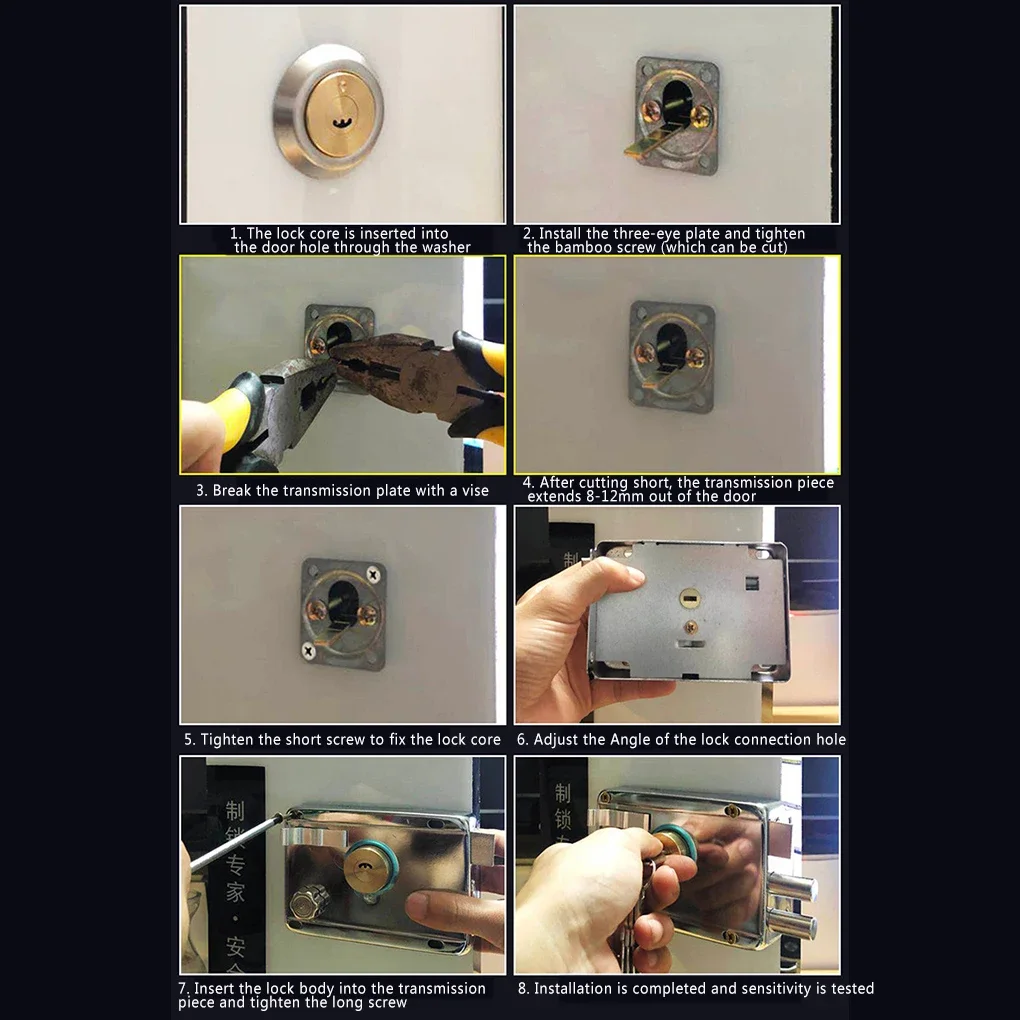 Exterior Iron Door Locks Security Anti-Theft Lock Multiple Insurance Lock Wood Gate Lock Hardware Household Indoor Dormitory