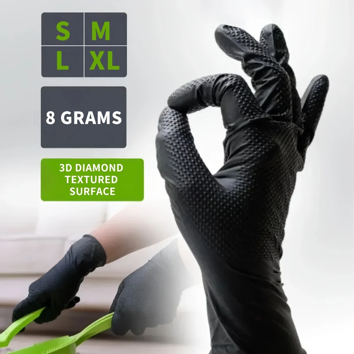 Extra Thick 8 Mil  Heavy Duty Disposable Nitrile Gloves,with Diamond Texture,Latex & Powder Free,security Protection Work Gloves