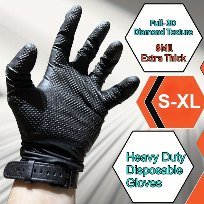 Extra Thick 8 Mil Heavy Duty Disposable Nitrile Gloves,with Diamond Texture,Latex & Powder Free,security Protection Work Gloves