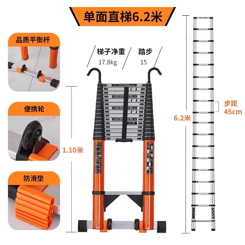 Extra thick and telescopic portable ladder with hook, long straight bamboo ladder, lifting aluminum ladder
