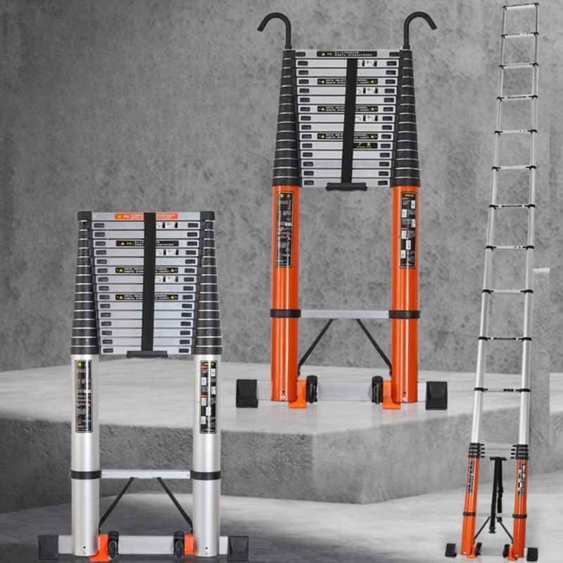 Extra thick and telescopic portable ladder with hook, long straight bamboo ladder, lifting aluminum ladder