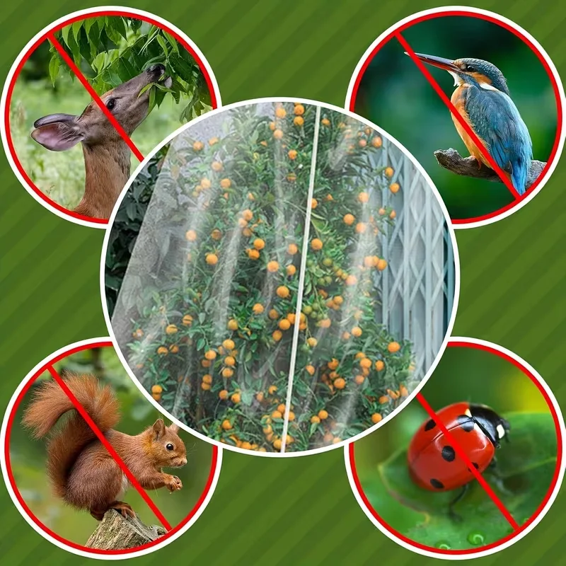 Keep Bird & Bugs Away: Our bird netting is made from high-quality, ultra-fine mesh cloth with HDPE material, which is both lightweight and durable. It protects your flowers, berry plants, fruit trees, and garden crops throughout the growing season while keeping birds and insects away.