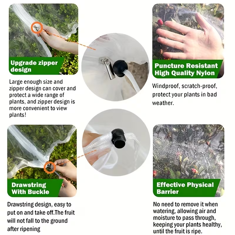 Zipper & Drawstring Design: Our insect net bag has a versatile zipper on the side and an additional drawstring closure around the bottom, making it effortless to put on and take off. The practical design lets you secure it tightly, keeping the cover from flying off with the wind.