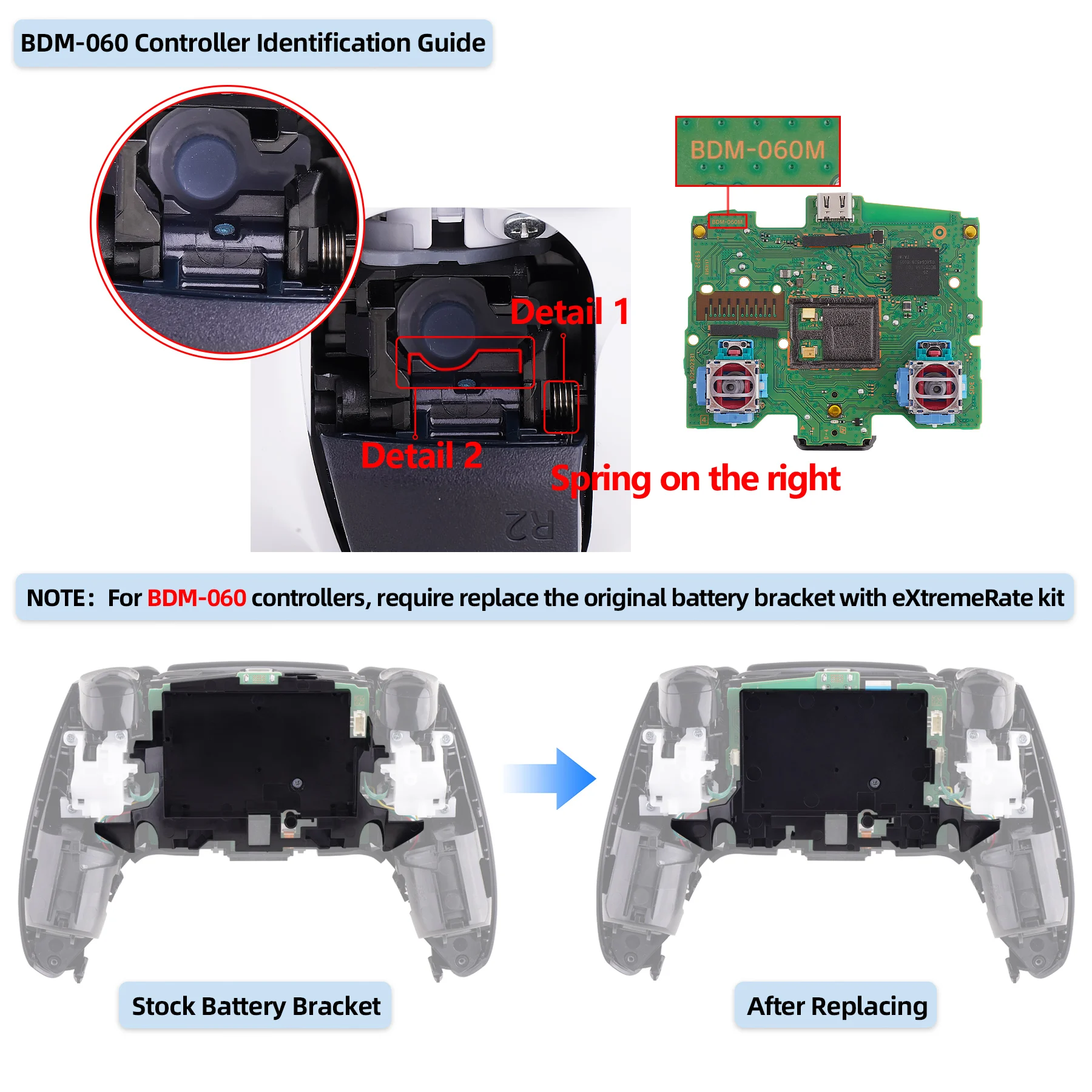 The eXtremeRate SPARK Remap Kit is ONLY compatible with PS5 controller BDM-030, BDM-040, BDM-050 and BDM-060 models. Does NOT fit BDM-010, BDM-020 models, or other controllers (Please check how to recognize your BDM model on YouTube by searching "eXtremeRate check BDM for PS5 controller" or "fiE4BWSlBRI" before purchasing to confirm your controller's compatibility).