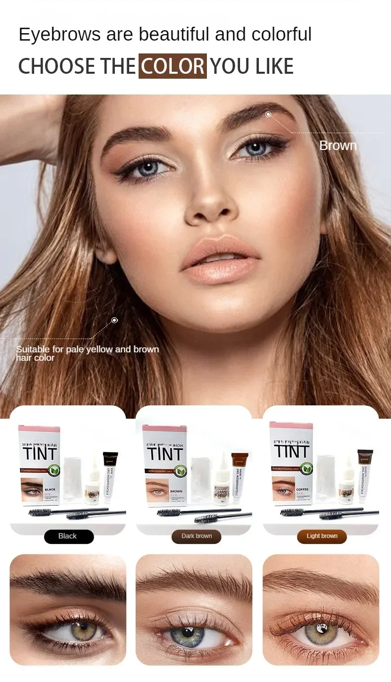 Eyelashes and Eyebrow Tint Dye Professional Eyebrow Dye Waterproof Long-lasting Eyebrow Brow Kit Semi Permanent Eyebrow