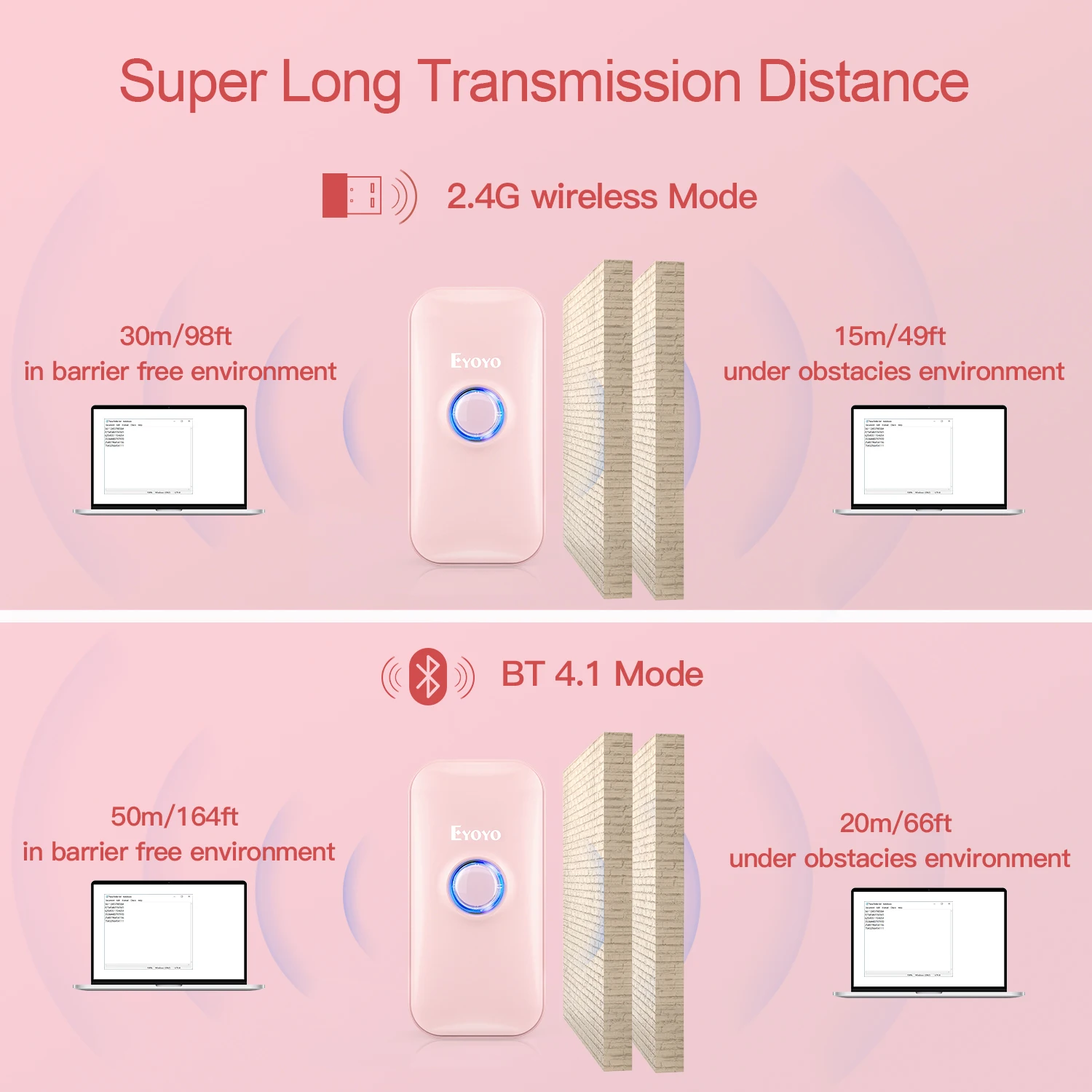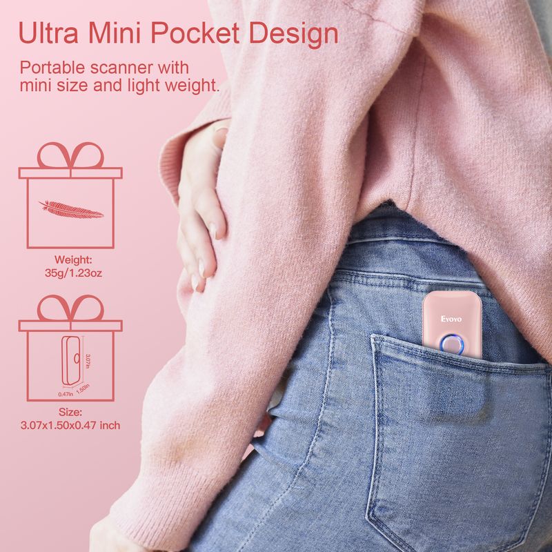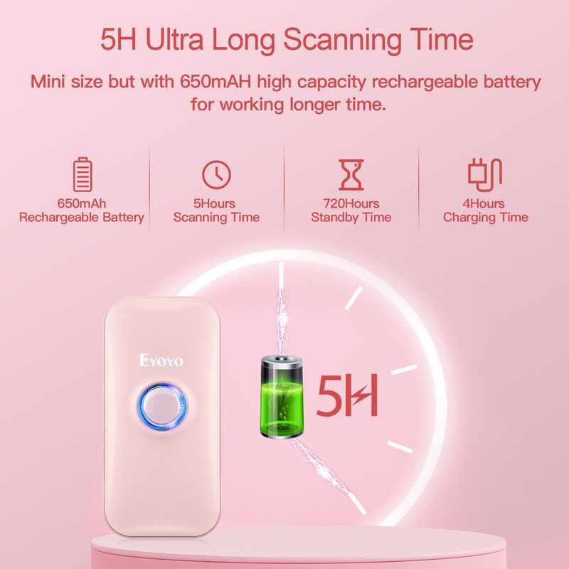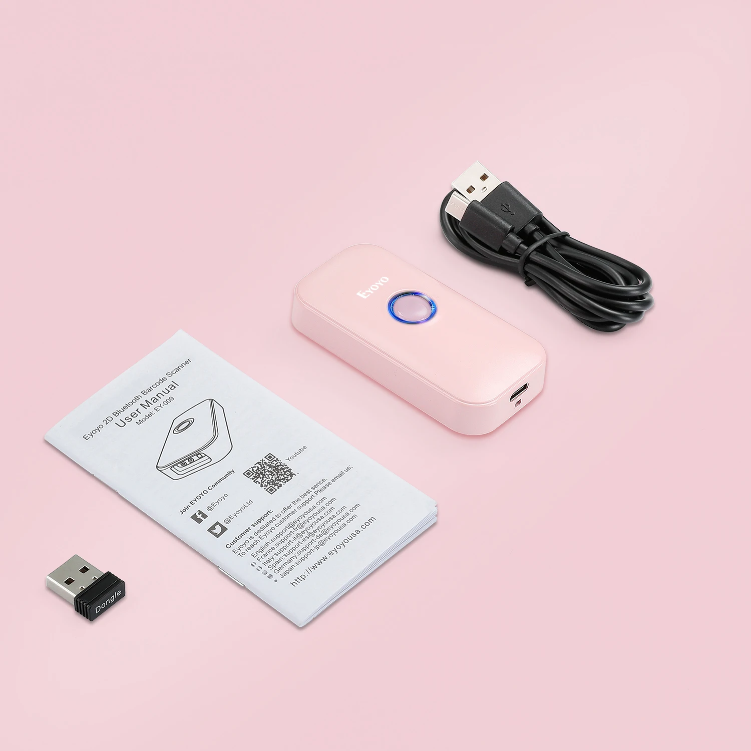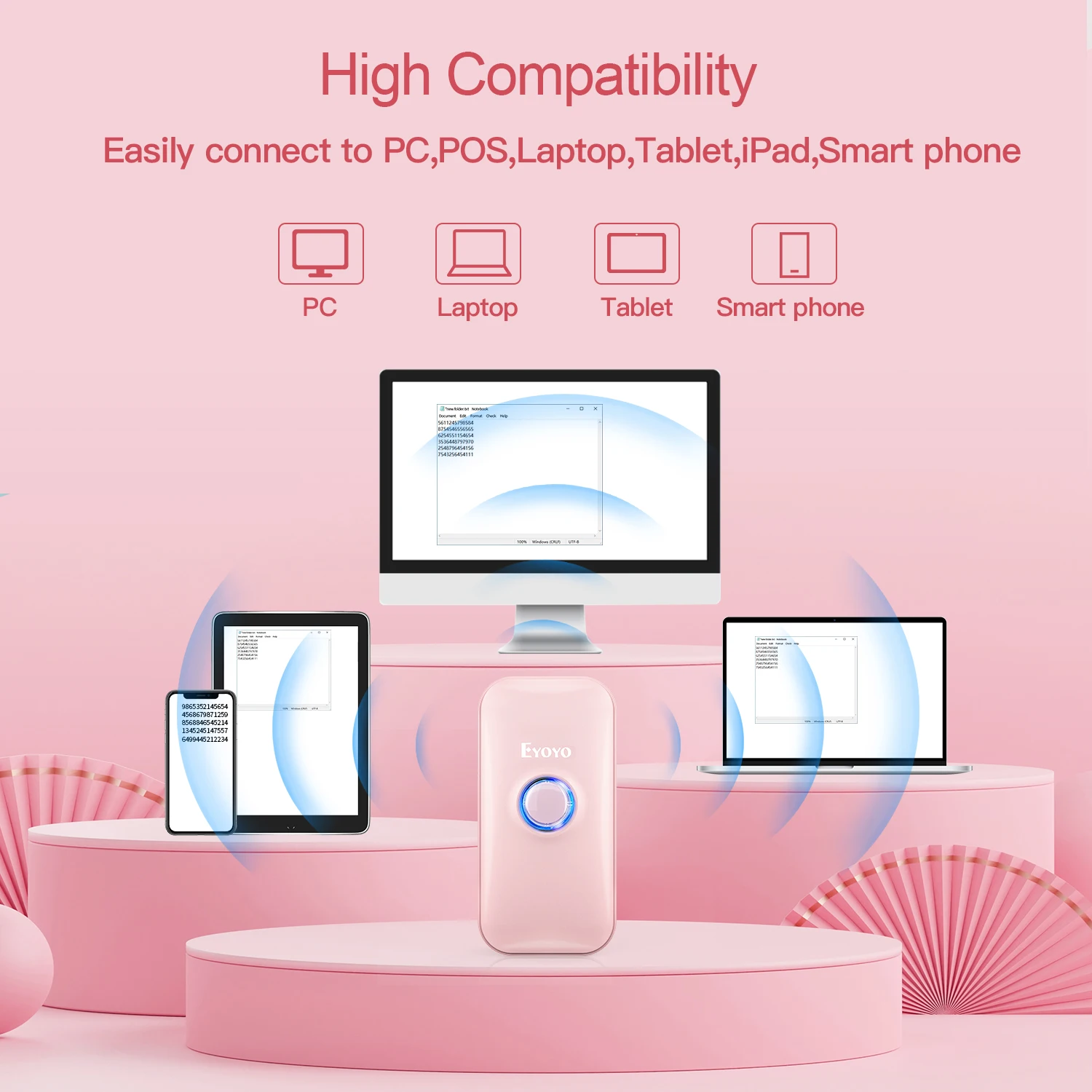 Eyoyo 1D Bluetooth Barcode Scanner Mini Pink For Women, Library Warehouse Portable Barcodes Scanning Support Windows iOS Android