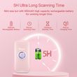 8. 650mAh rechargeable battery can use up to 5H continuous scanning time, only need 2H to charge. Standby time is up to 30 days.